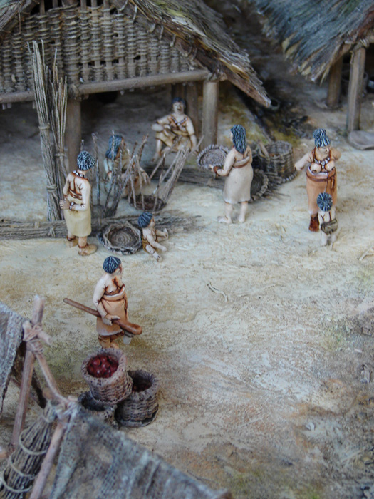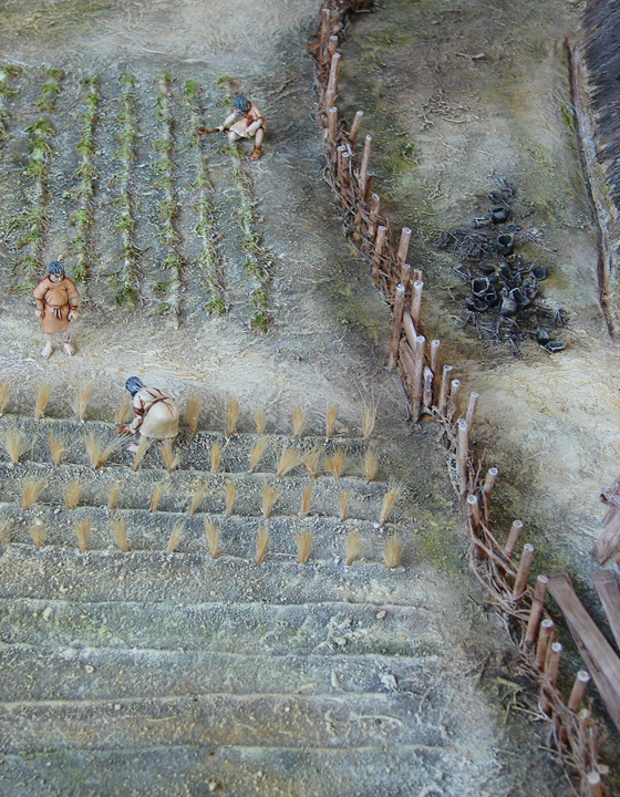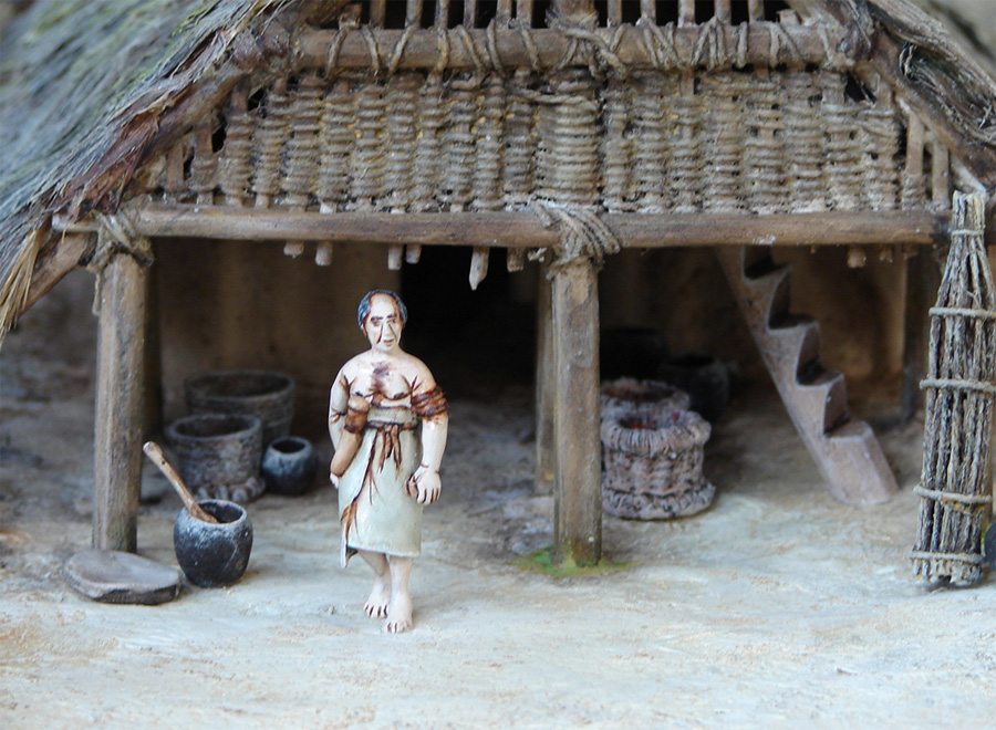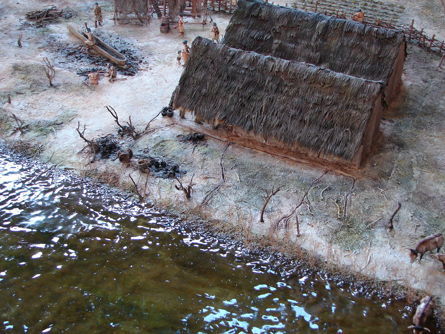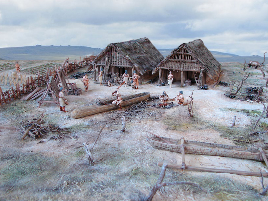 Village Néolithique | Otzi, l'homme des glaces | Polissage de haches | Village Chalcolithique | Chasse au cerf | Construction d'une maison sur pilotis | Greniers surélevés | Scène d'inhumation - Ensemble funéraire | Scène de labour |